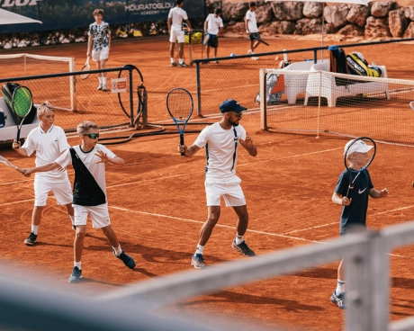 Au cœur de Costa Navarino, le Mouratoglou Tennis Center vous invite à perfectionner votre jeu dans un cadre idyllique où le luxe et la nature se rencontrent. Nos installations de première classe, combinées à un encadrement expert, offrent une occasion unique de progresser tout en profitant de la beauté de la Méditerranée.