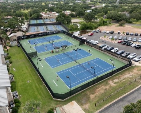 Nous proposons des programmes de tennis et de pickleball, incluant la location de courts, les leçons privées, les stages — le tout dans un cadre exceptionnel en bord de lac, au cœur du Texas Hill Country.